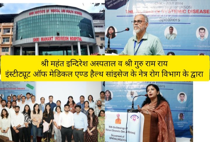 श्री महंत इन्दिरेश अस्पताल की नेत्र रोग विभाग की डॉ. प्रकृति पोखरियाल ने स्वागत अभिभाषण दे कर सभी प्रतिभागियों का स्वागत किया। उन्होने कहा कि इस सी.एम.ई. कार्यक्रम उद्देश्य आंखो के रेटिना( पर्दे) की बीमारियों को शुरूआती स्तर पर ही पहचानना व उसके मरीजो को सर्वश्रेष्ठ उपचार की विभिन्न विधियों पर मंथन व ज्ञानवर्धन करना हैै कार्यक्रम का शुभारंभ प्राचार्य, एसजीआरआरआईएण्डएचएस, डॉं0 अशोक नायक, कुल सचिव, शोध एवं विकास, श्री गुरु राम राय विश्वविद्यालय, डॉं0 पंकज मिश्रा, प्रेसिडेन्ट, यू0के0एस0ओ0एस0, डॉं0 विनोद अरोड़ा व विभागाध्यक्ष नेत्र रोग विभाग श्री महंत इन्दिरेश अस्पताल व कार्यक्रम की आँग्रेनाईजिंग चेयरपर्सन डॉं0 तरन्नुम शकील के द्वारा संयुक्त रूप से दीप प्रज्जवलन कर किया गया डॉं0 अशोक नायक ने अपने सम्बोधन में कहा, इस तरह के सी0एम0ई0 कार्यक्रम ज्ञान के आदान प्रदान के लिए आदर्श मंच हैं। उन्होंने कहा कि एसजीआरआरआईएण्डएचएस इस तरह के आयोजनों को समय-समय पर करवाता रहा हैइसके उपंरात सी.एम.ई. कार्यक्रम की प्रथम वक्ता विभागाध्यक्ष, नेत्र रोग विभाग, हिमालयन इंस्टीट्यूट ऑफ मेंडिकल सांइसेंज व रेटिना विशेषज्ञा डॉ. रेनू धस्माना ने डायबीटिक रेटिनोपैथी व डायबीटिक किडनी डीजीज विषय पर व्याख्यान दिया। उन्होनें मधुमेह व गुर्दे के रोगियों मे होने वाली रेटिना की बिमारियों को सही समय पर पहचानने व उनके उचित उपचार की विधियों के बारे में ज्ञान साझा किया।
