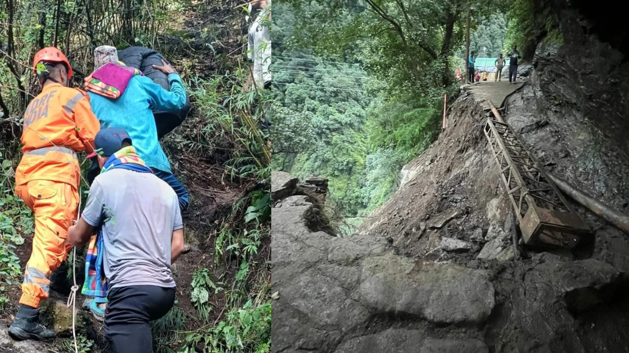 RUDRAPRAYAG: केदारघाटी में हो रही बारिश के कारण केदारनाथ पैदल मार्ग को नुकसान पहुंचा है। गुरुवार को हुई बारिश और भूस्खलन के बाद गौरीकुंड से आगे चीरबासा के पास 15 मीटर मार्ग वाशआउट हो गया है। इस कारण वहां फंसे तीर्थयात्रियों को सुरक्षित तरीके से वैकल्पिक मार्ग तैयार कर रास्ते को पार करवाया जा रहा है। क्षतिग्रस्त मार्ग को एनडीआरएफ, एसडीआरएफ के साथ डीडीआरएफ के जवान दुरुस्त करने में जुटे हुए हैं।