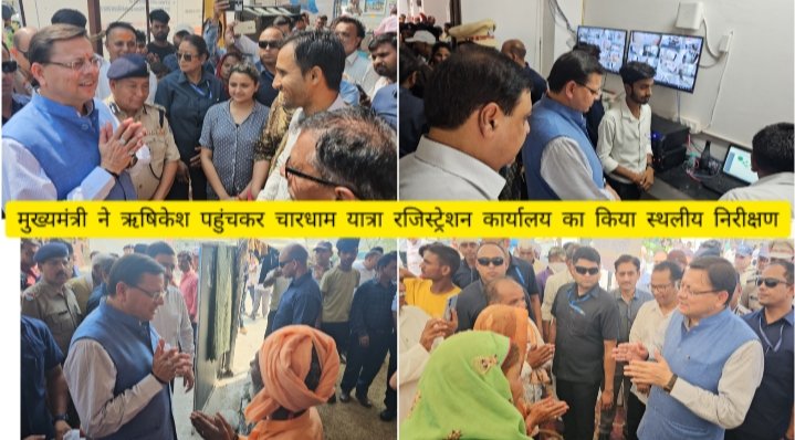 मुख्यमंत्री पुष्कर सिंह धामी ने सोमवार को ऋषिकेश पहुंचकर चारधाम यात्रा रजिस्ट्रेशन कार्यालय एवं श्रद्धालुओं के लिए की गई व्यवस्थाओं का स्थलीय निरीक्षण किया। निरीक्षण के दौरान मुख्यमंत्री ने देश के विभिन्न क्षेत्रों से आये श्रद्धालुओं से बातचीत कर उनसे व्यवस्थाओं का फीडबैक भी लिया मुख्यमंत्री ने निरीक्षण के दौरान अधिकारियों को आवश्यक मूलभूत सुविधाओं समेत पेयजल, भोजन, स्वच्छता एवं स्वास्थ्य व्यवस्थाओं को और अधिक सुदृढ बनाने के निर्देश दिए। निरीक्षण के दौरान उन्होंने श्रद्धालुओं की सुविधा के लिए बनाए गए विश्राम स्थल, स्वास्थ्य केन्द्र एवं यात्रा नियंत्रण कक्ष में सभी सुविधाओं का भी जायजा लिया। उन्होंने संबंधित अधिकारियों को यात्रियों को किसी भी प्रकार की असुविधा न होने एवं व्यवस्थित यात्रा के लिए आपसी सामंजस्य से कार्य करने के निर्देश दिये मुख्यमंत्री ने कहा कि विभिन्न क्षेत्रों से उत्तराखण्ड आने वाले श्रद्धालुओं की सुगमए सुरक्षित एवं सुविधाजनक चारधाम यात्रा के लिए राज्य सरकार लगातार कार्य कर रही है। इस अवसर पर आयुक्त गढ़वाल श्री विनय शंकर पाण्डेय, आईजी श्री के.एस. नगन्याल एवं जिला प्रशासन के अधिकारी उपस्थित थे