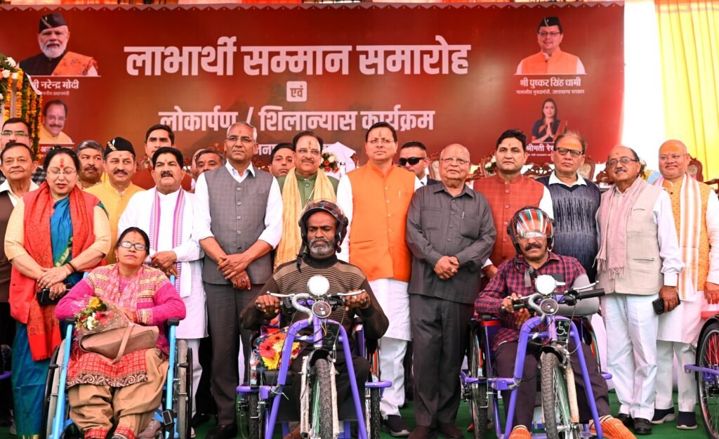 इस अवसर पर मुख्यमंत्री द्वारा प्रधानमंत्री आवास योजना के 10 लाभार्थियों को चेक प्रदान किये गये। साथ ही राष्ट्रीय ग्रामीण आजीविका मिशन के अन्तर्गत लखपति दीदी योजना के अन्तर्गत 10 स्वयं सेवी संस्थाओं को 4 करोड़ 6 लाख 50 हजार के चेक प्रदान किये गये। कार्यक्रम में मुख्यमंत्री अल्पसंख्यक मेधावी बालिका प्रोत्साहन योजना के तहत जनपद की 40 बालिकाओं 10-10 हजार के चेक दिये गये। समाज कल्याण विभाग द्वारा 7 दिव्यांगजनों को मोटराइज्ड ट्राई साइकिल तथा 10 दिव्यांगजनों को व्हील चेयर दी गई। कृषि विभाग के 25 कृषको को सम्मानित किया गया। बनभूलपुरा घटना में पत्रकारों के दोपहिया वाहन क्षतिग्रस्त होने पर मुख्यमंत्री विवेकाधीन राहत कोष से 10 लाख का चेक प्रदान किया। इस अवसर पर ईजा बैंणी महोत्सव पर आधारित वीडियो भी मुख्यमंत्री द्वारा लांच की गई।