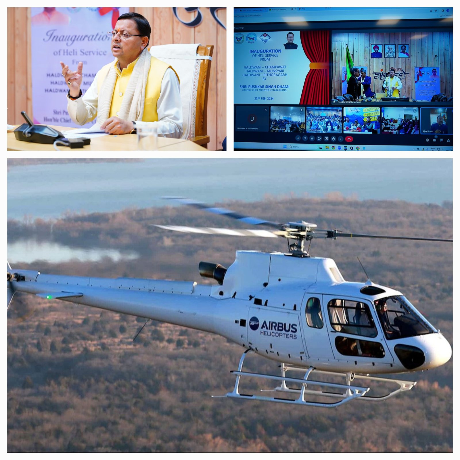 मुख्यमंत्री पुष्कर सिंह धामी ने गुरुवार को मुख्यमंत्री आवास, सभागार में नागरिक उडडयन विभाग द्वारा आयोजित कार्यक्रम में हल्द्वानी से मुनस्यारी, पिथौरागढ़, चम्पावत हेतु क्षेत्रीय कनेक्टिविटी स्कीम के अंतर्गत संचालित की जा रही हैली सेवा का वर्चुअल रूप से फ्लैग ऑफ कर शुभारम्भ किया। कार्यक्रम को सम्बोधत करते हुए मुख्यमंत्री ने प्रधानमंत्री नरेंद्र मोदी और केंद्रीय नागरिक उड्डयन मंत्री ज्योतिरादित्य सिंधिया का हार्दिक आभार व्यक्त करते हुये कहा कि इस हवाई सेवा की लम्बे समय से प्रतीक्षा थी। उन्होंने कहा कि l दूरस्थ क्षेत्रों को परस्पर जोड़ने और लोगों को आवागमन हेतु सुविधा प्रदान करने में सक्षम तो होगी ही, आपात समय में राहत और बचाव कार्यों के प्रभावी क्रियान्वयन के लिए एक प्रभावी माध्यम भी साबित होगी। उन्होंने कहा कि इससे विभिन्न पर्यटन क्षेत्रों के दर्शन होने के साथ ही लोगों को आवागमन में भी काफी सुविधा होगी।