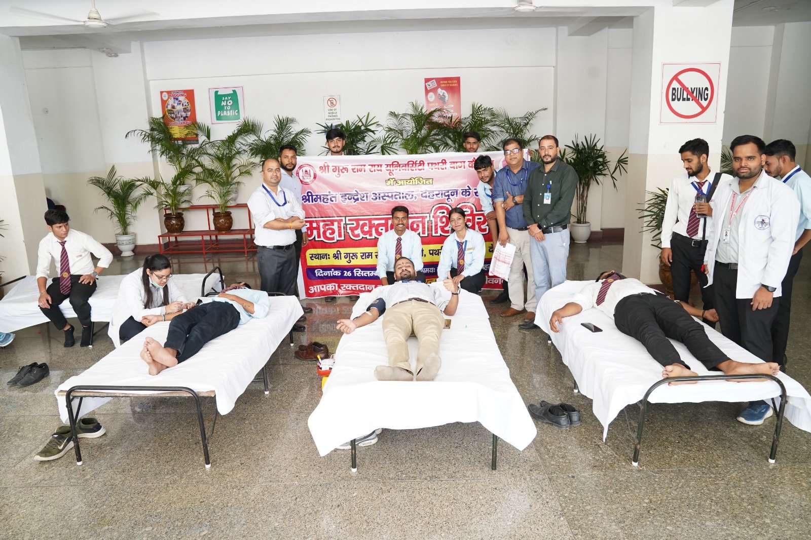 श्री गुरु राम राय विश्वविद्यालय में मंगलवार को महारक्तदान शिविर का आयोजन किया गया। साथ ही मौजूद सभी शिक्षकों एवं विद्यार्थियों को रक्तदान के फायदे बताए गए।