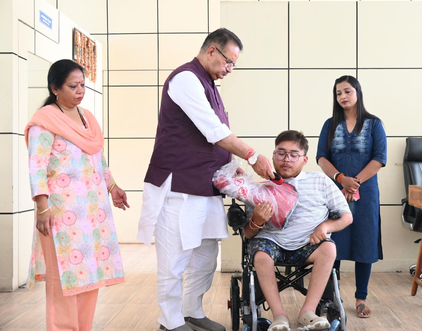 कैबिनेट मंत्री गणेश जोशी ने रविवार को अपने कैंप कार्यालय में नीलकंठ विहार निवासी दिव्यांग यश नेगी को इलेक्ट्रॉनिक व्हीलचेयर प्रदान की। इस अवसर पर मंत्री जोशी ने कहा कि सरकार समाज के अंतिम पंक्ति में खड़े व्यक्ति तक सुविधा पहुँचाने के लिए संकल्पित है। उन्होंने बताया कि यश नेगी लंबे समय से व्हीलचेयर की आवश्यकता महसूस कर रहे थे, जिसे देखते हुए व्यक्तिगत स्तर पर यह सहयोग किया गया है। मंत्री गणेश जोशी ने कहा कि प्रधानमंत्री नरेंद्र मोदी के “सबका साथ, सबका विकास और सबका विश्वास” के संकल्प के तहत प्रदेश सरकार दिव्यांगजन सहित समाज के हर वर्ग के कल्याण के लिए समर्पित है। उन्होंने कहा कि जरूरतमंदों की सहायता करना केवल एक औपचारिकता नहीं, बल्कि उनकी व्यक्तिगत प्रतिबद्धता भी है।