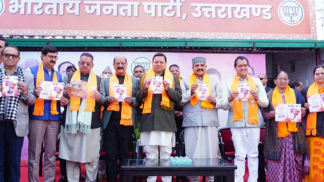 बुधवार को उत्तराखंड बीजेपी प्रदेश मुख्यालय में मुख्यमंत्री पुष्कर सिंह धामी, बीजेपी प्रदेश अध्यक्ष महेंद्र भट्ट और बीजेपी की कोर टीम ने प्रदेश के निकाय चुनाव को लेकर के अपने संकल्प पत्र के साथ-साथ उपलब्धि पत्र भी जारी किया बीजेपी ने प्रदेश के 11 बड़े नगर निगम को लेकर के 11 अलग-अलग घोषणा पत्र जारी किए। इसमें अलग अलग निकायों के लिए अलग अलग घोषणाएं की गई हैं।