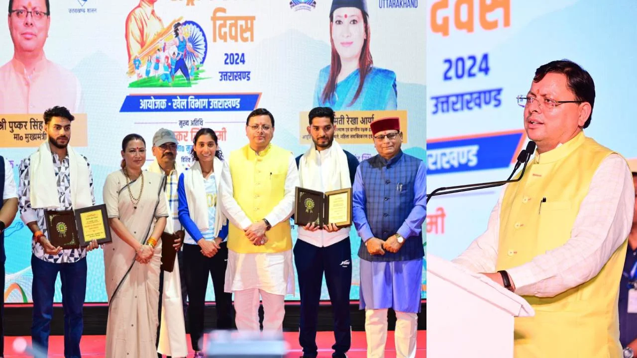 DEHRADUN: मुख्यमंत्री पुष्कर सिंह धामी ने राष्ट्रीय खेल दिवस के अवसर पर पेरिस ओलंपिक में भाग लेने वाले उत्तराखंड के एथलीटों को सम्मानित किया। मुख्यमंत्री ने हॉकी के जादूगर मेजर ध्यानचंद की प्रतिमा पर माल्यार्पण करते हुए सभी को खेल दिवस की शुभकामनाएं दी। मुख्यमंत्री ने ओलंपियन लक्ष्य सेन, परमजीत सिंह, सूरज पंवार व अंकिता ध्यानी को 50 – 50 लाख की धनराशि के चेक प्रदान किए।इस दौरान मुख्यमंत्री ने उत्तराखंड में आयोजित होने वाले 38वें राष्ट्रीय खेलों की वेबसाइट का लोकार्पण भी किया।