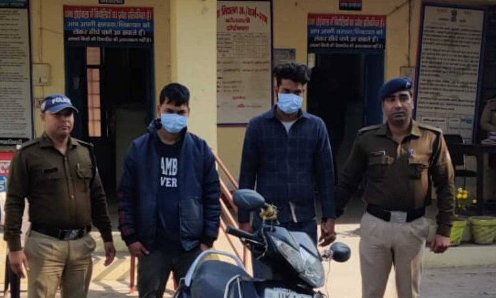 डोईवाला । पुलिस ने एक्टिवा चोरी के आरोप में दो लोगों को गिरफ्तार कर उनके कब्जे से एक्टिवा भी बरामद की है। बीते चार जनवरी को थाना डोईवाला पर किशन सिंह पुत्र जोत सिंह निवासी निकट रेडियन्ट पब्लिक स्कूल प्रेमनगर बाजार, डोईवाला द्वारा तहरीर दी कि उनकी एक्टिवा 3जी जिसका नंबर यूके14सी- 0363 मॉडल 2016 बीती रात्रि घर के आंगन से किसी अज्ञात चोरो द्वारा चोरी कर ली गई है।