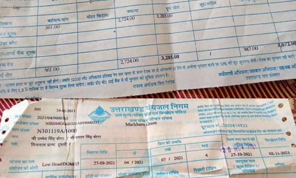 कई दूसरे भी कार्य किए गए। जिसके बाद अप्रैल 2021 में जल संस्थान द्वारा इन गांवों की पूरी पेयजल योजना पेयजल निगम को ट्रांसर्फर कर दी थी। और उसके बाद से पेयजल निगम ही इन गांवों के उपभोक्ताओं से पेयजल बिल वसूल कर रहा था। लेकिन इस फरवरी माह में उपभोक्ताओं को अब फिर से जल संस्थान द्वारा मार्च तक के पेयजल बिल भेज दिए गए हैं। जिससे उपभोक्ताओं के सामने असमंजल की स्थिति पैदा हो गई है कि वो पेयजल बिल किस विभाग में जमा करें। यही नहीं उपभोक्तओं का कहना है कि उनके बिल भी हजारों में जल संस्थान द्वारा भेजे गए हैं।
