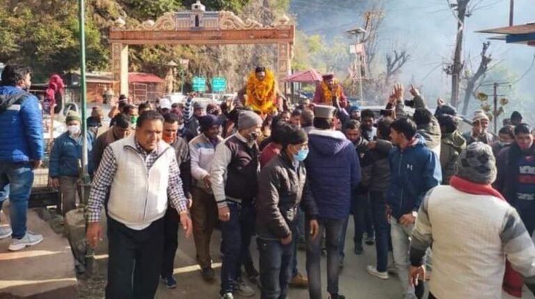 घनसालीः उत्तराखंड में कोविड-19 के चलते रैलियों और सभाओं पर रोक लगाई हुई है और आदर्श आचार संहिता का सख्ती से पालन करने के निर्देश भी दिए हैं। बावजूद इसके विधायक कोविड प्रोटोकॉल का उल्लंघन कर रहे हैं। ऐसा ही नजारा घनसाली विधानसभा क्षेत्र में देखने को मिला। यहां भारतीय जनता पार्टी ने मौजूदा विधायक शक्ति लाल को दोबारा टिकट दिया है। टिकट मिलने के बाद शक्ति लाल का चमियाला बाजार में स्वागत किया गया। इस मौके पर सैकड़ों लोगों की भीड़ मौजूद रही। इस दौरान प्रत्याशी शक्ति लाल और उनके समर्थक धारा 144 और कोविड-19 की गाइडलाइन भी भूल गए। नियमों पर कार्रवाई करने का दावा करने वाला शासन- प्रशासन भी इस दौरान मूक दर्शक बना रहा। इतना ही नहीं वीडियो वायरल होने के बावजूद भी अभी तक विधायक पर कोई कार्रवाई नहीं की गई है। जिससे सवालियां निशान खड़े हो रहे है।