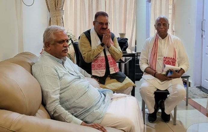 जहां उन्होंने गुवाहाटी एयरपोर्ट में भाजपा के राष्ट्रीय महामंत्री संगठन बीएल संतोष और असम एवं त्रिपुरा के संगठन महामंत्री रवींद्र राजू से भेंट की।