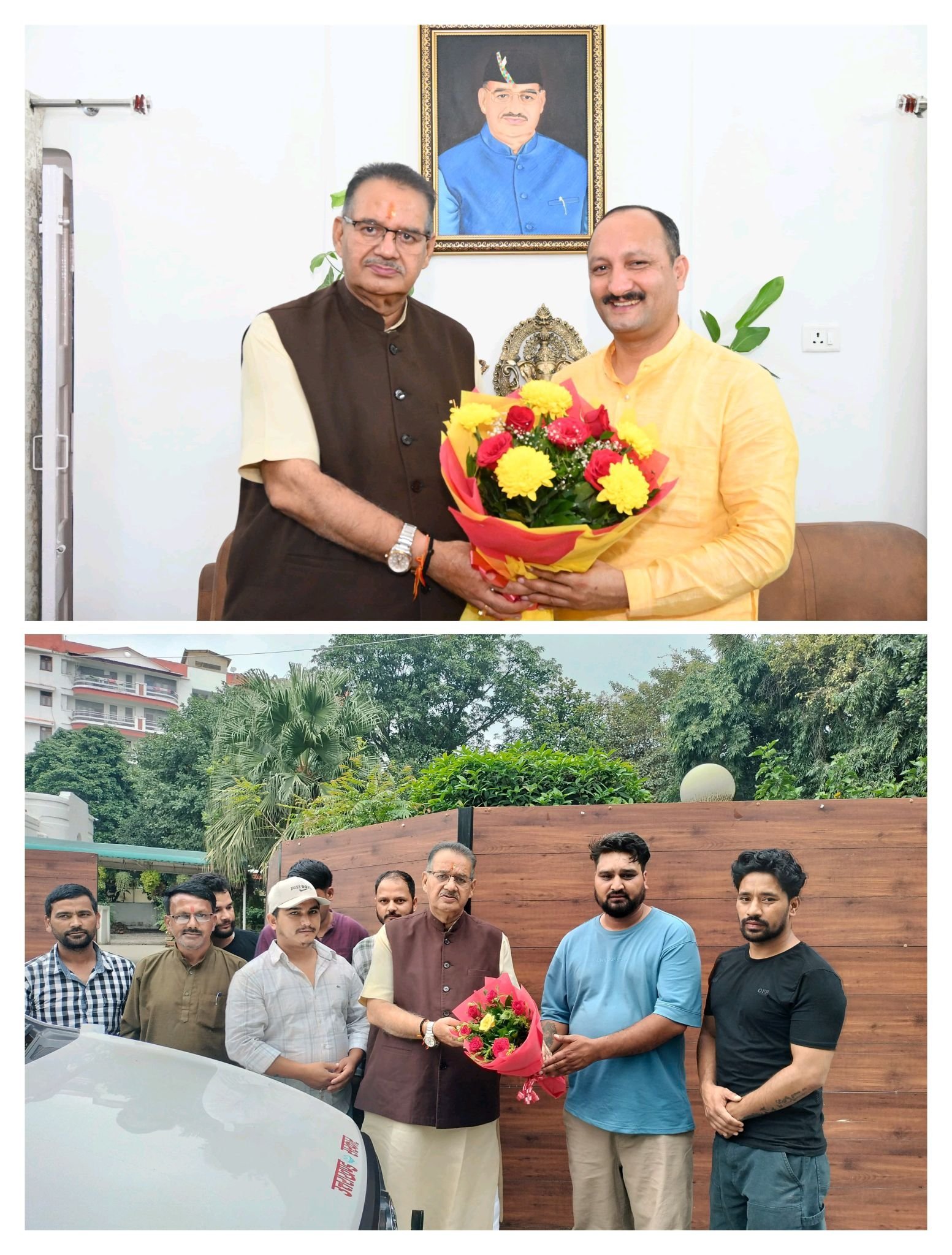 प्रदेश के कृषि मंत्री गणेश जोशी से आज उनके शासकीय आवास पर उत्तरकाशी के नव निर्वाचित जिला पंचायत अध्यक्ष रमेश चौहान ने भेंट की। इस दौरान मंत्री जोशी ने रमेश चौहान को जिला पंचायत अध्यक्ष निर्वाचित होने पर बधाई देते हुए उनके सफल कार्यकाल की शुभकामनाएं दीं।