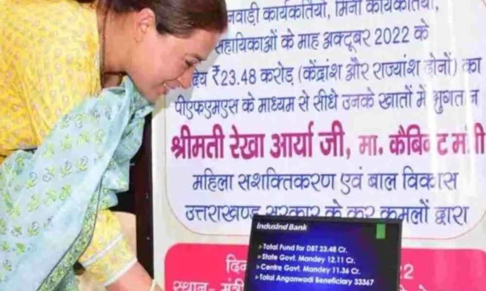 मीडिया रिपोर्टस के अनुसार आज यमुना कॉलोनी स्थित शासकीय आवास पर महिला सशक्तिकरण एवं बाल विकास मंत्री रेखा आर्य ने (केन्द्रांश और राज्यांश दोनों) का पीएफएमएस के माध्यम से सीधे आंगनबाड़ी कार्यकत्रियों के खातों में भुगतान कर दिया है। इस अवसर पर कैबिनेट मंत्री ने सभी आंगनबाड़ी बहनों को दीपावली पर्व की अग्रिम शुभकामनाएं दी। उन्होंने कहा कि इस धनराशि के हस्तान्तरण होने से कहीं ना कहीं हमारी आंगनबाड़ी बहनें जो विभाग की रीढ़ हैं, उन्हें अपनी जरूरतें पूरा करने में लाभ मिलेगा और उनकी दीपावली प्रकाशमय होगी