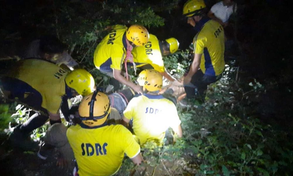 SDRF टीम तुरंत ही रेसक्यू उपकरणों के साथ रात के घनघोर अंधेरे में अत्यंत विषम परिस्थितियों में गहरी खाई में उतरी व घायलों तक पहुंच बनाई।