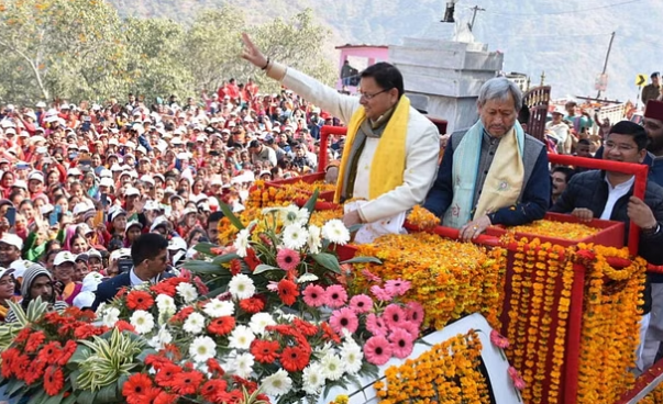 विभिन्न स्कूलों की छात्राओं के अलावा महिलाओं ने सीएम धामी का स्वागत किया। विभिन्न तरह के ढोल-नगाड़ों की टीमों ने रोड शो के दौरान धूम मचा दी। वहीं, जनसभा में भी इतनी भीड़ उमड़ी थी कि पैर रखने तक की जगह नहीं मिली।