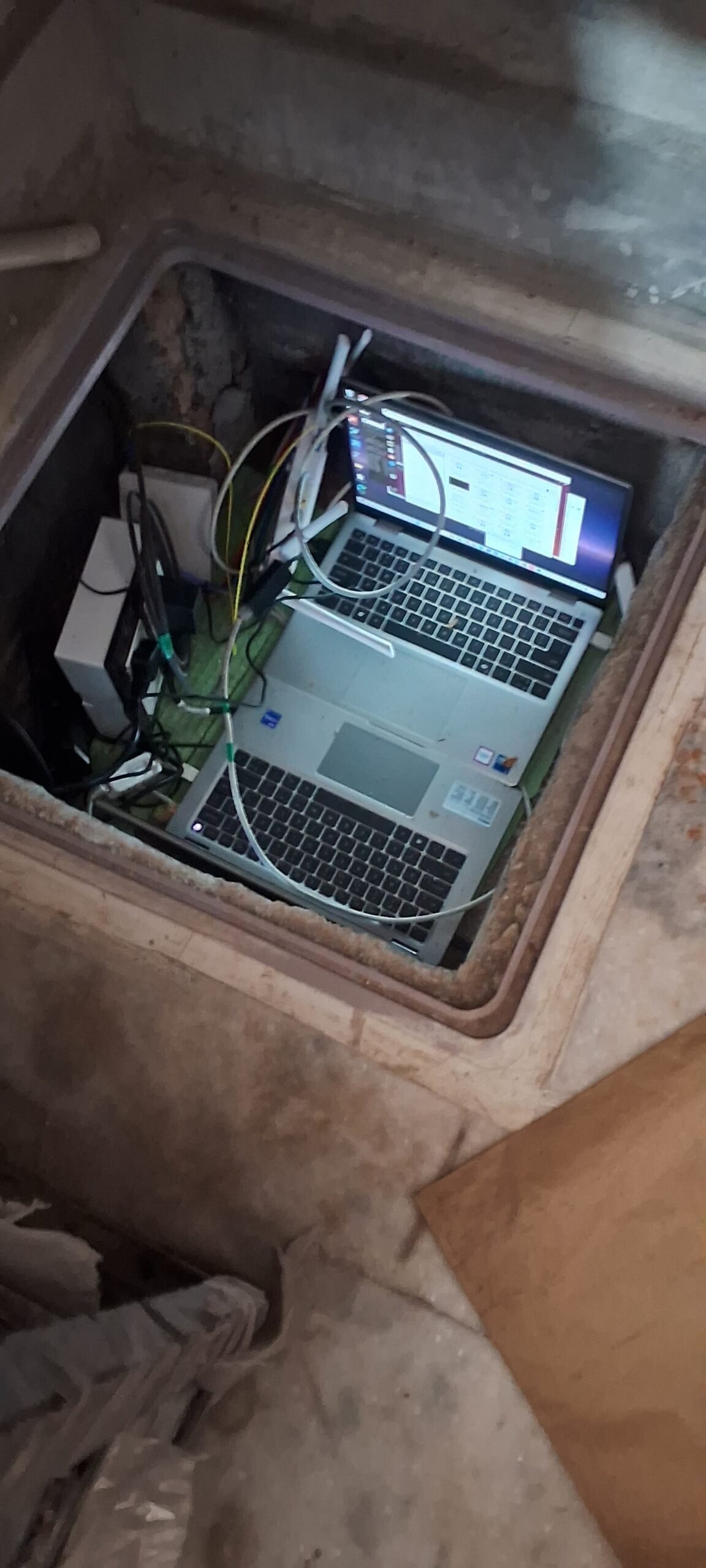 इसके अंदर सीमेंट के प्लास्टर के नीचे डेडिकेटेड लीज लाइन्स और 02 लैपटॉप मय राउटर छिपाए गए थे।